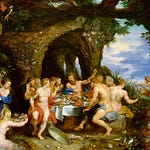 When Circe actually appears, however, out the door, she’s just a ‘she’. It’s the doors themselves that are ‘shining’! The focussing power of Homeric versifying keeps her in our periphery, but illuminates the opening of her doors. You’d expect the revelation of the goddess to be the focus of the poet’s gaze—not the doors. Eurylochus suspects a trick and stays back, so we have no eyewitness to what goes on next within. Perhaps we are to suspect that Odysseus must have become intimate with Circe to find out—perhaps we have expected that intimacy all along. Eurylochus, for now, stays outside, but Odysseus the initiate must have already passed through those doors.